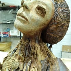This ceramic sculpture captures an ethereal blend of natural elegance and human form, showcasing a profound narrative embedded within its design. The figure, with its textured surfaces and delicate features, bridges the gap between humanity and the organic world.
